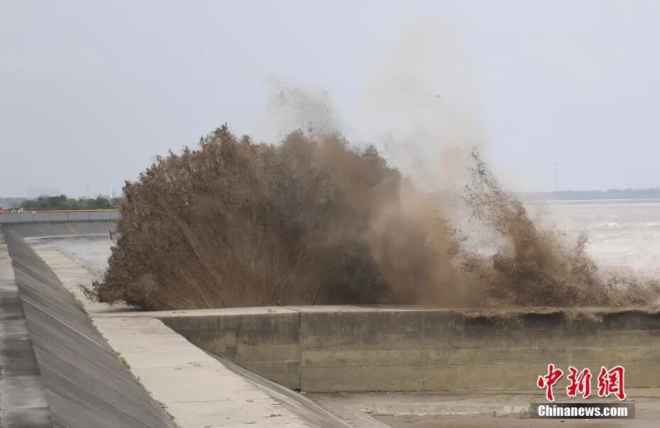 10月3日,钱塘江大潮在撞击堤岸后激起巨大的浪花。当日是农历八月十七,在浙江嘉兴盐仓江畔,钱塘江大潮奔涌而上,十分壮观。中新社记者 王刚 摄