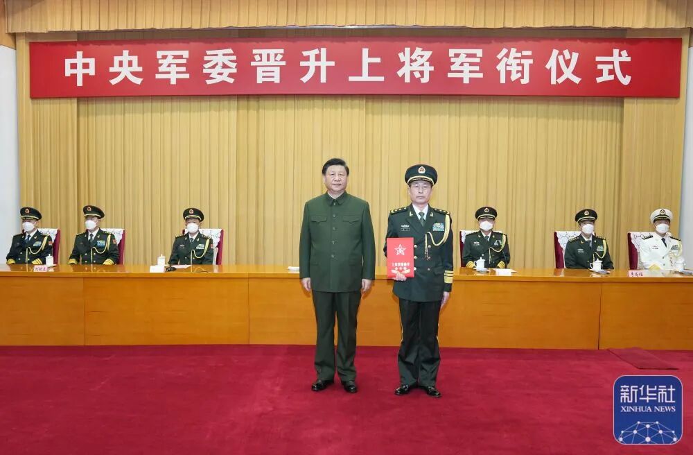 下午4时许,晋衔仪式在庄严的国歌声中开始。中央军委副主席张又侠宣读了中央军委主席习近平签署的晋升上将军衔命令。中央军委副主席何卫东主持晋衔仪式。