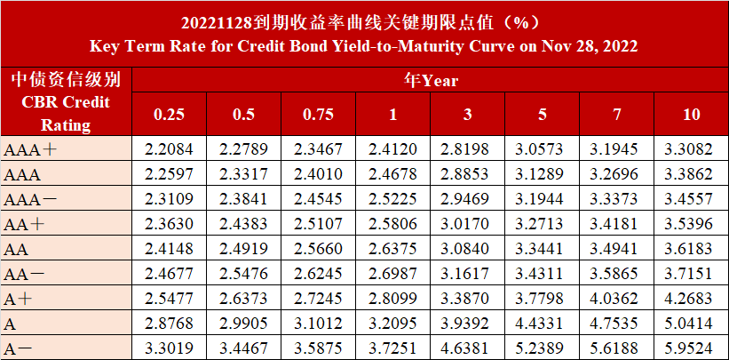 20221128信用债到期收益率曲线关键期限点值变动情况