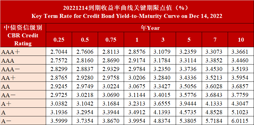20221214信用债到期收益率曲线关键期限点值变动情况