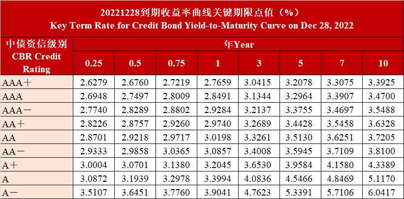 20221228信用债到期收益率曲线关键期限点值变动情况