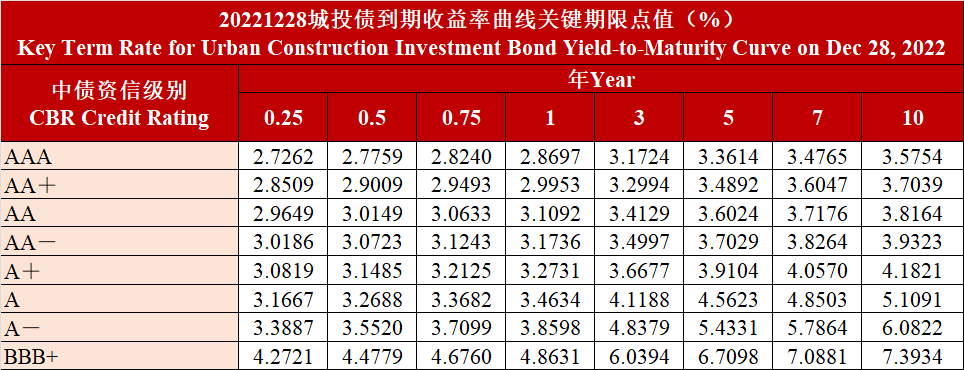 20221228城投债到期收益率曲线关键期限点值变动情况