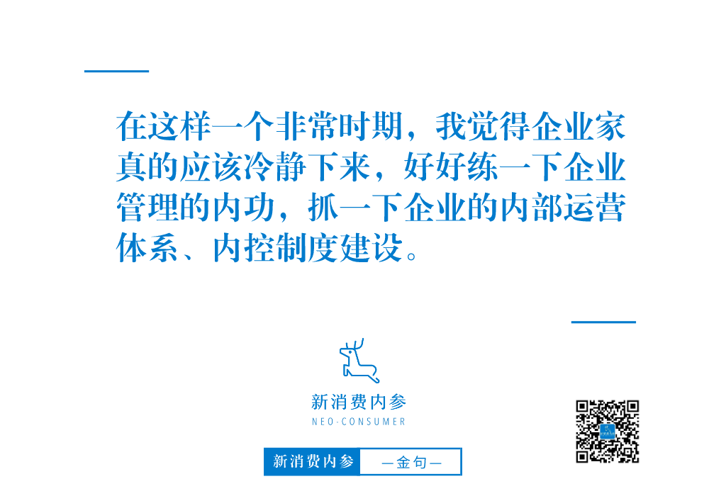 但凡这些涉及到了企业中台和后台的事儿,涉及到企业内部价值经营和外部价值创造的事儿。壮大中台强后台的工作其实很多企业家不愿意做,因为企业家很多都是做营销和品牌出身,但不愿意去做内部运营和管理的事儿。运营管理的事儿往往是精雕细琢、久久为功,不容易看到成效,不容易令人兴奋 。在这样一个非常时期,我觉得企业家真的应该冷静下来,好好练一下企业管理的内功,抓一下企业的内部运营体系、内控制度建设。