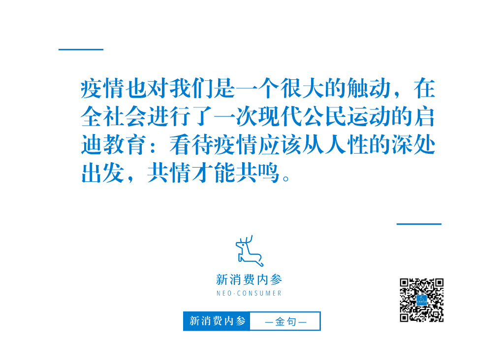 疫情也对我们是一个很大的触动,在全社会进行了一次现代公民运动的启迪教育:看待疫情应该从人性的深处出发,共情才能共鸣。