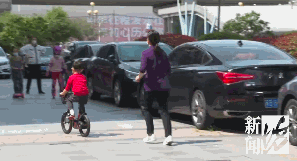 来到小区的广场上自由玩耍。
