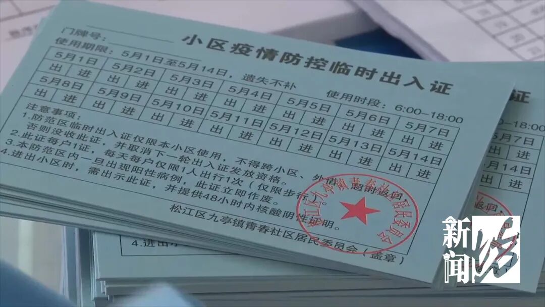 中午,松江九亭镇九久青年城社区正在为居民发放出入证。虽然附近的店铺大部分仍处在关闭状态,但不少居民还是表示“心情大好”。