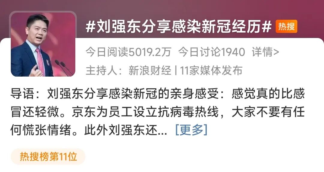 #刘强东分享感染新冠经历#的话题