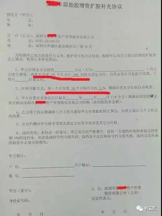 承诺保底回购、按月分红3%的“原始股”增资协议