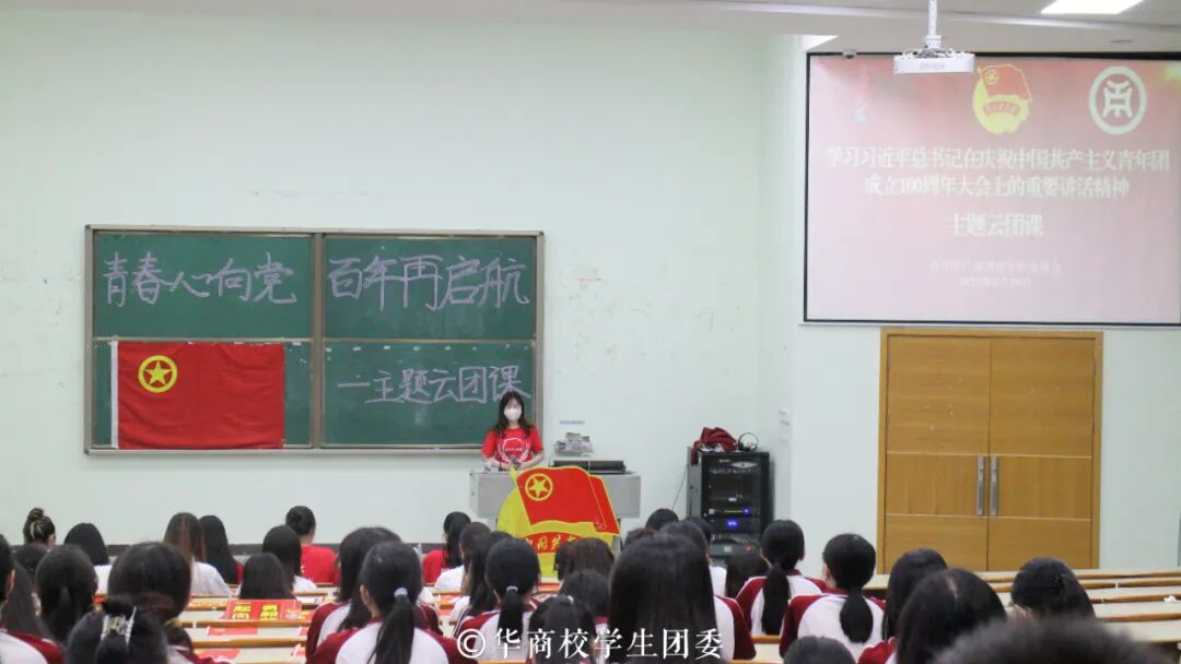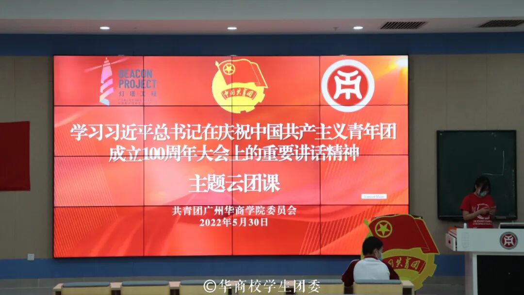 5月10日,习近平总书记出席庆祝中国共产主义青年团成立100周年大会并发表重要讲话。学习好宣传好贯彻好习近平总书记重要讲话精神,是当前和今后一个时期全团的首要政治任务。各级团组织、团员青年们迅速行动、广泛动员,在广大青年中掀起了学习热潮。共青团中央于5月30日19:30推出“青春心向党 百年再启航——学习习近平总书记在庆祝中国共产主义青年团成立100周年大会上的重要讲话精神”主题云团课!共青团广州华商学院委员会组织学校团员青年集中观看直播。