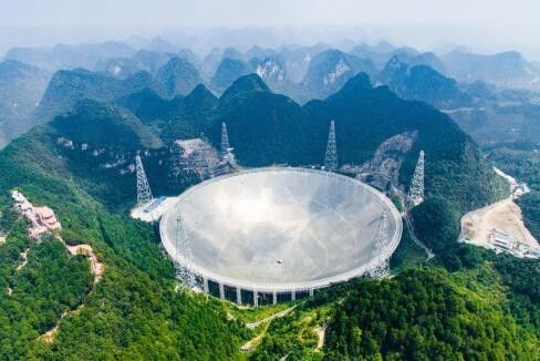FAST位于贵州省平塘县名为大窝凼的喀斯特洼地之中,基于三项全部中国知识产权的自主创新——选址方法、索网主动反射面、柔性索结合并联机器人的馈源支撑,FAST突破了射电望远镜工程极限,建成为世界最大的单口径射电望远镜,其接收面积相当于30个足球场大小。