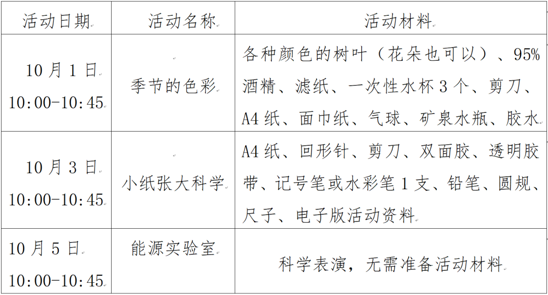 2.活动中,请家长全程陪同参与,监督儿童安全规范使用实验道具;请家长鼓励儿童积极思考发言,参与互动答题将有机会获得精美礼品一份。