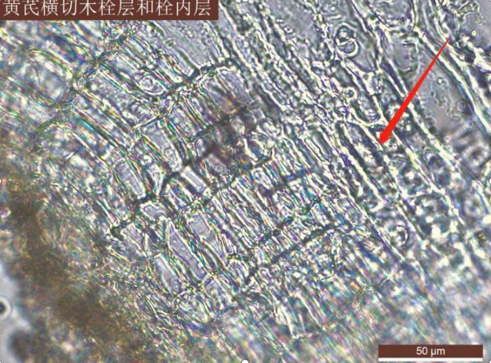 再来说说黄芪的鉴别,说到黄芪根横切的栓内层里有“厚角细胞”,让人感觉怪怪的。