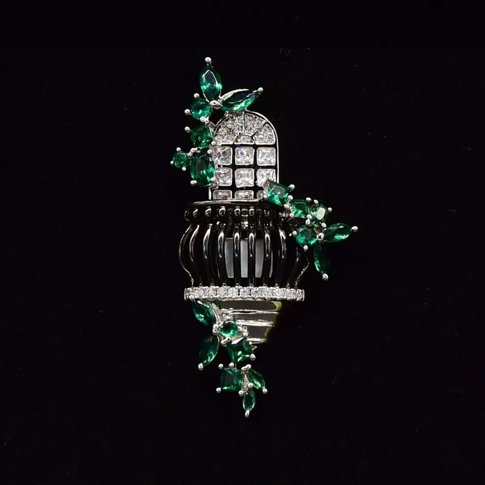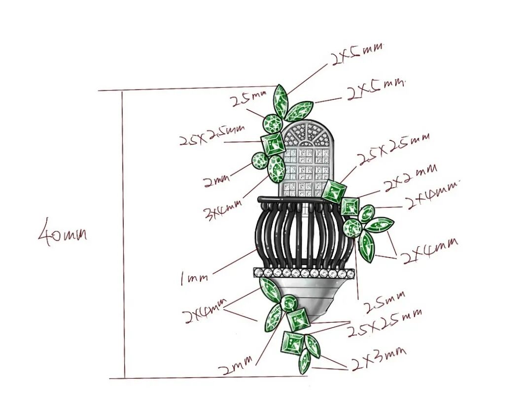 “露台故事:罗密欧阳台胸针”以此为设计灵感,温柔的绿色融于璀璨的银色,人工锆石搭配天然母贝,大方典雅的设计完美地还原了衡复露台的万般风情。