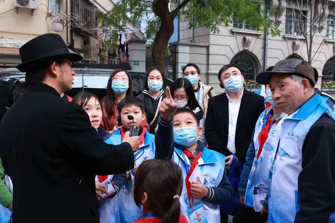 “武康路全长1083米但俯瞰整条街区,老建筑鳞次栉比、接连成片。”上海首批“建筑可阅读”宣传大使周培元作为带队老师,与湖南社区居民“老克勒人文领读志愿者沙龙”负责人陶云飞一起,带领孩子“行走讲解”。“老建筑的活化利用,也在于传承城市文化记忆和脉络。”