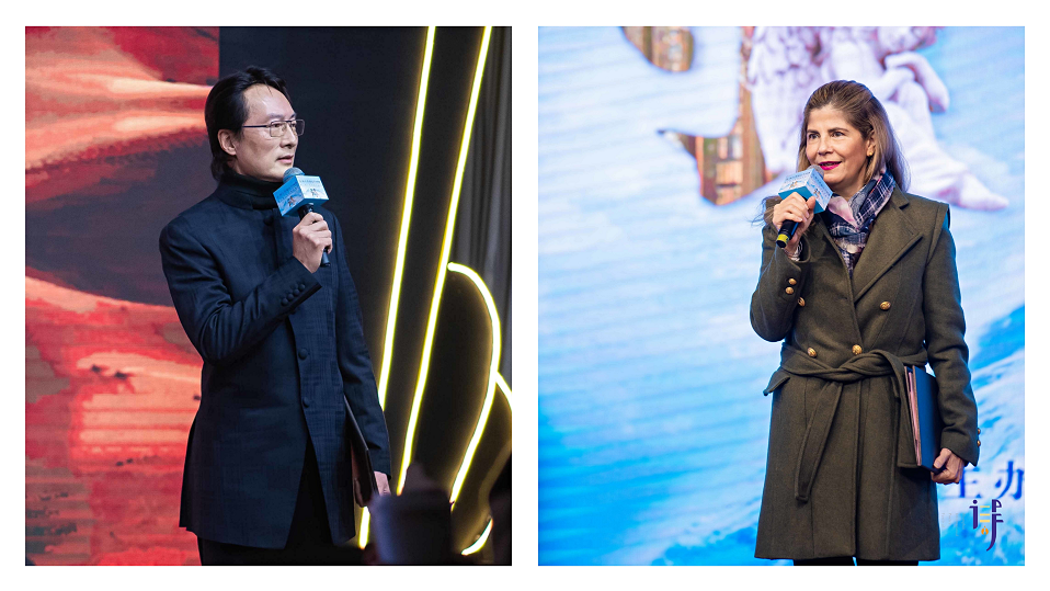 现场播放了马加里托·奎亚尔获奖感言的视频,著名配音演员、主持人刘家祯与墨西哥驻沪总领事Lorena Larios(柳若兰)女士共同朗诵了马加里托·奎亚尔的诗《羚羊和丝绸之路》。
