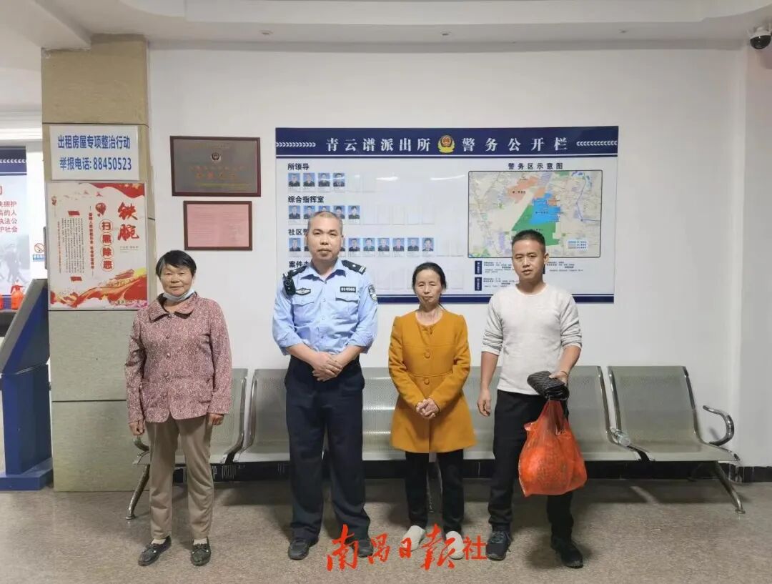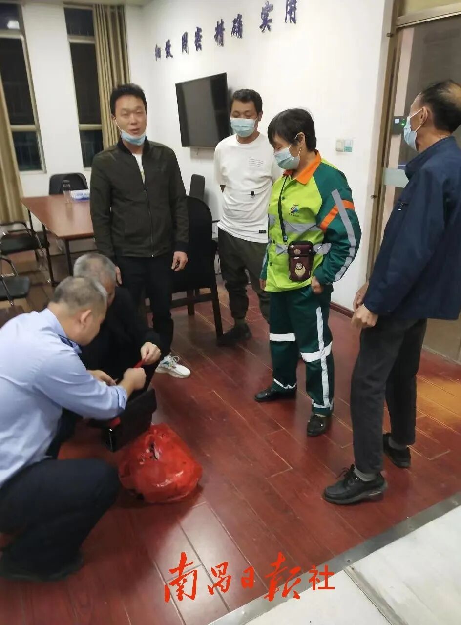 据了解,10月16日18时左右,65岁的涂美秀在清扫马路时,在路边的人行道发现一个装有衣服的塑料袋。涂美秀打开塑料袋后,发现袋子里还有一个黑色的女士手提包,包里有大量的现金。涂美秀心想,失主丢了这么多钱,一定非常焦急,可是包内没有任何失主的信息。为了寻找失主,当晚8点,涂美秀在儿子的陪同下,来到青云谱公安分局青云谱派出所,把手提包交给了民警。经过清点,民警发现手提包内共有12480元现金。随后,民警成功联系上失主周女士。