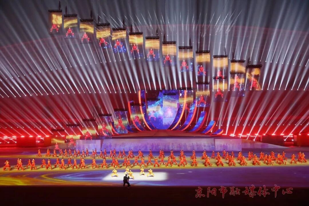 11月18日晚,浙江省第十七届运动会开幕式在金华体育中心举行,我市的鼓阵舞《鼓乐龙腾》与《板凳龙》武术表演两个节目在开幕式上亮相。值得一提的是,我市是金华地区唯一在省运会开幕式有表演的县市。《板凳龙》的节目灵感来源于省级非遗项目许宅花灯,并以武术表演的形式展现,旨在将东阳的特色文化元素与武术这一传统体育项目相融合,近百名表演人员均为广厦大学学生。《鼓乐龙腾》节目由80只大鼓、20只镲及4条舞龙组成,其中鼓手由湖溪镇志愿者组成,舞龙队伍由市婺剧传承中心老师和广厦大学学生组成。