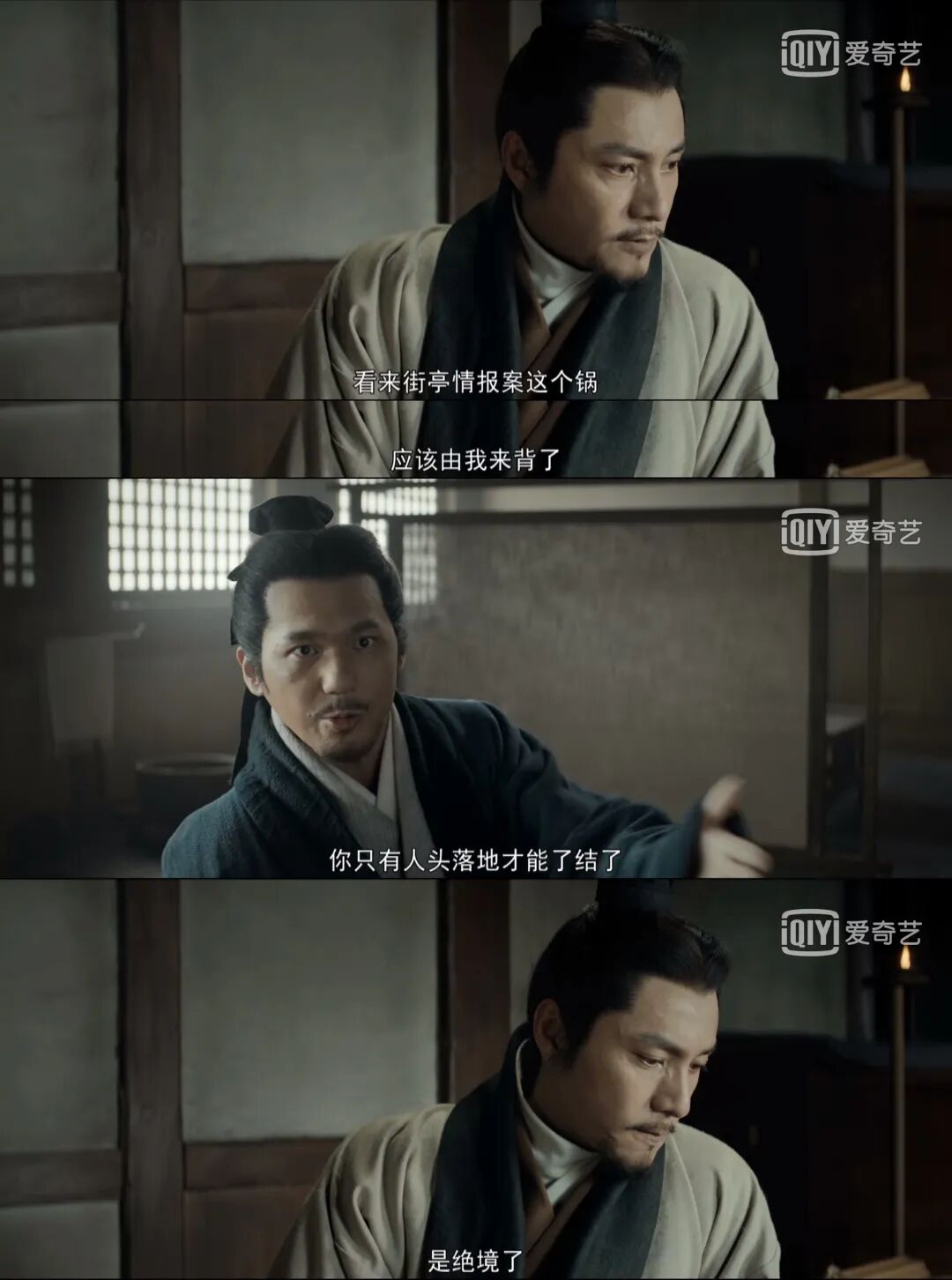 《风起陇西》的画面的确更接近电影质感,第一集诸葛亮在大帐排兵布阵,烛光摇曳在演员脸上忽明忽暗的,不知道的会以为是盗墓题材。对比隔壁《山河月明》里徐达灯火通明的军营大帐,真想代观众问一嘴,导演您这是考验谁的眼神呢?艺绽君随手截个屏,都是黑乎乎的。难怪网友说,《风起陇西》最好的打开方式是关了灯在被窝里看,以毒攻毒。