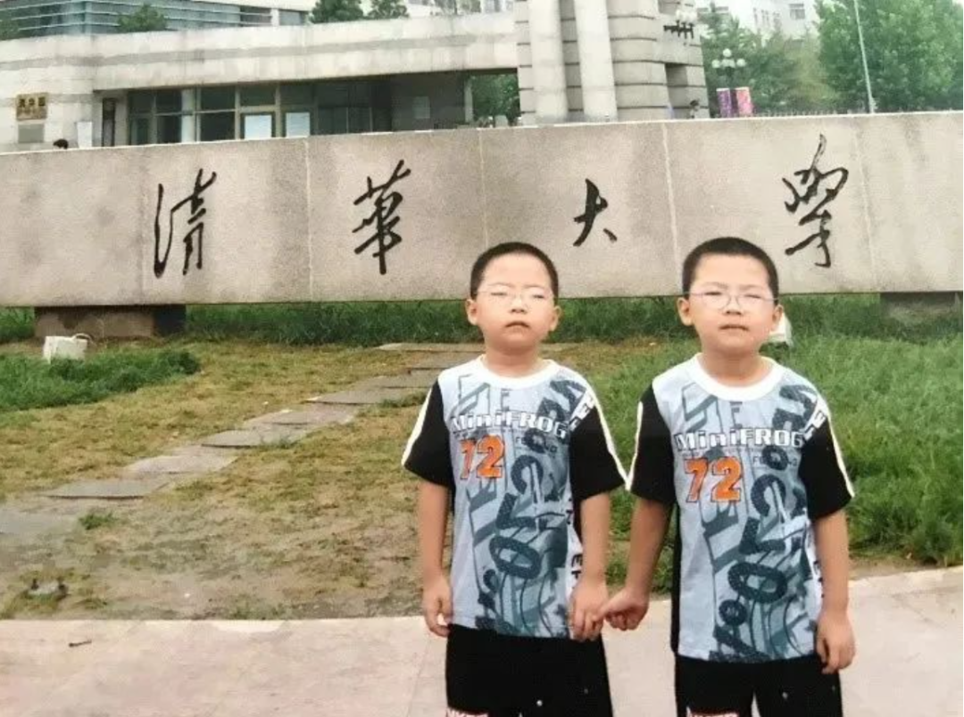 2005年,小学一年级的暑假,父母带着刘亦谦和刘亦贤来到清华大学参观,并留下了这张珍贵的合影。