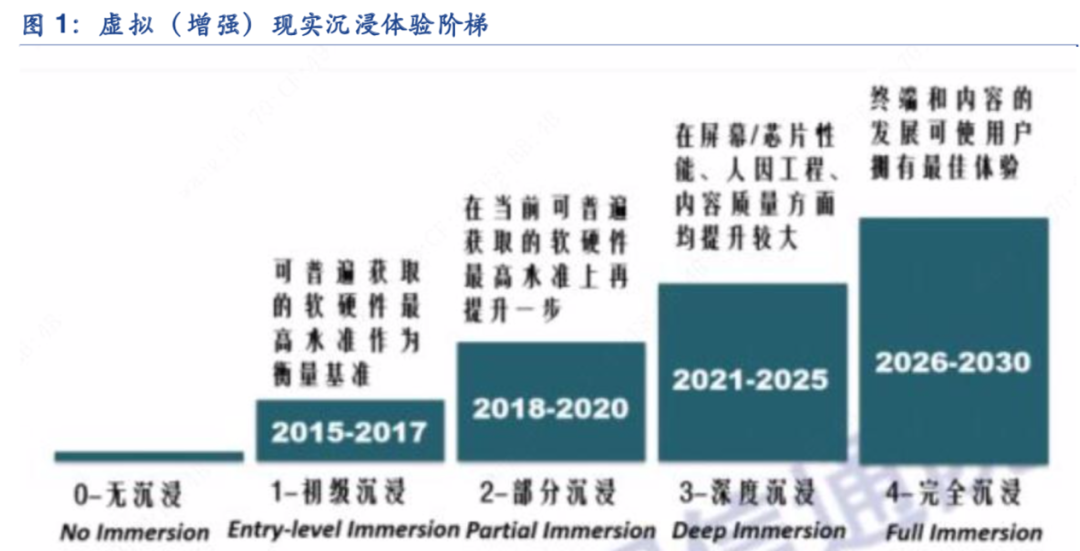 这一天还有多远?现在还不得而知,不过按照目前我国VR行业的发展规划,目前我们正处于视觉的部分沉浸向深度沉浸过度,2030年将实现完全视觉的沉浸感体验,部分重要的技术指标分别为:单眼屏幕分辨率8K、精细化虚拟化身、 渲染处理速度16K/240 FPS、眼球追踪、触觉反馈、虚拟移动等,通俗地讲就是基本能达到现实的体验。