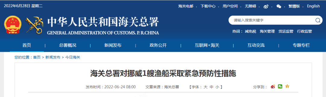 因从进口自挪威1批次冻大西洋红鱼的包装样本中检出新冠病毒核酸阳性,按照海关总署公告2020年第103号的规定,全国海关自即日起暂停接受挪威捕捞加工渔船ATLANTIC STAR(注册编号为M2000)的产品进口申报1周,至2022年6月30日。![]()