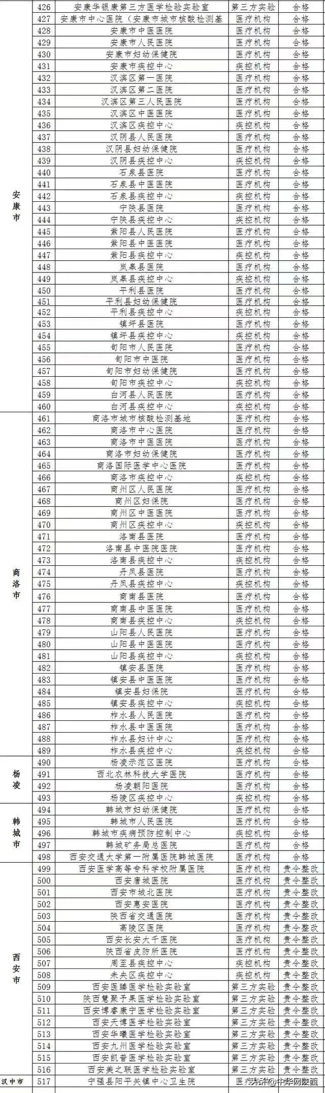 近期,陕西对全省新冠病毒核酸检测机构开展了集中排查整顿,其中排查整顿结果“合格”机构498家,“责令整改”机构19家。现将具体排查整顿结果进行公示(详见附件)。下一步,医改医管局将持续督促指导各地对各医疗机构、疾控机构和第三方机构加强监管,接受社会各界广泛监督,确保提供优质高效的核酸检测服务,切实维护广大群众健康权益。19家“责令整改”机构名单如下: