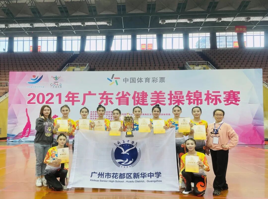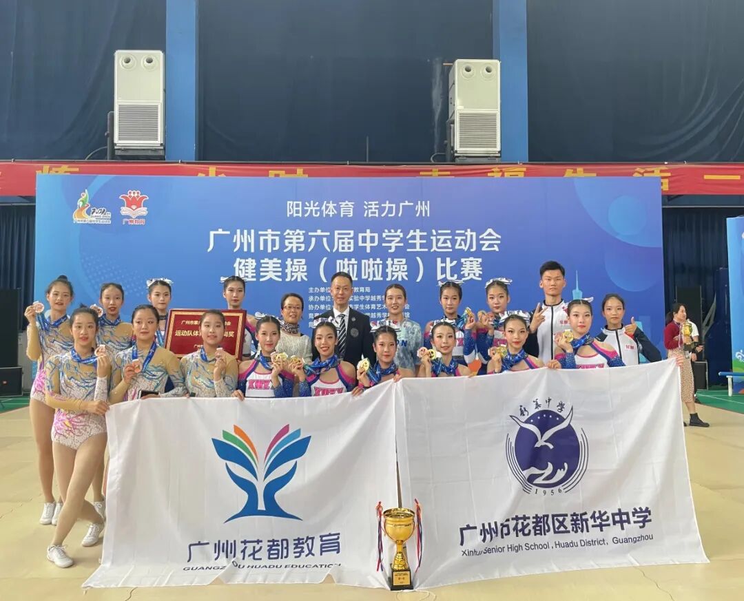 2021年我校作为主力队代表花都区参加广州市第六届中学生运动会获得团体总分第一名,有氧踏板第一名