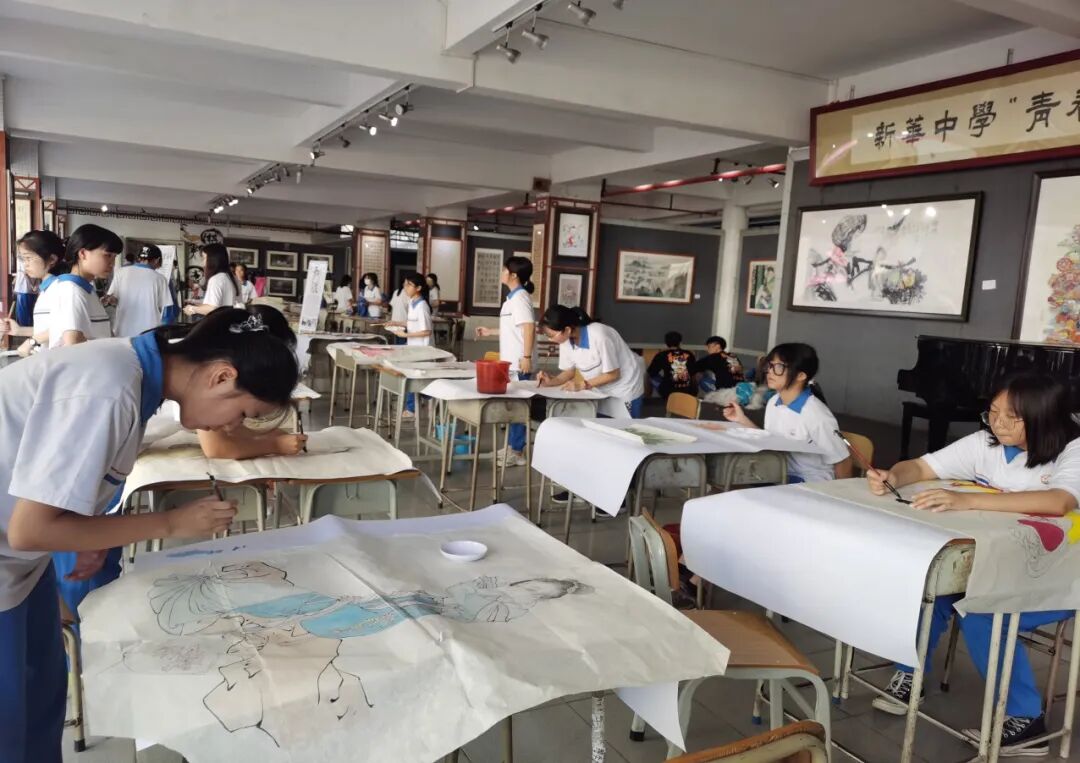新华中学始建于1956年,是国家示范性高级中学、广东省艺术特色学校、全国校园足球、篮球特色学校、广州市传统项目(足球、篮球、田径、健美操)学校、广州市花都区体艺特色学校,篮球和书法是广州市高水平学生体育美育团队项目。