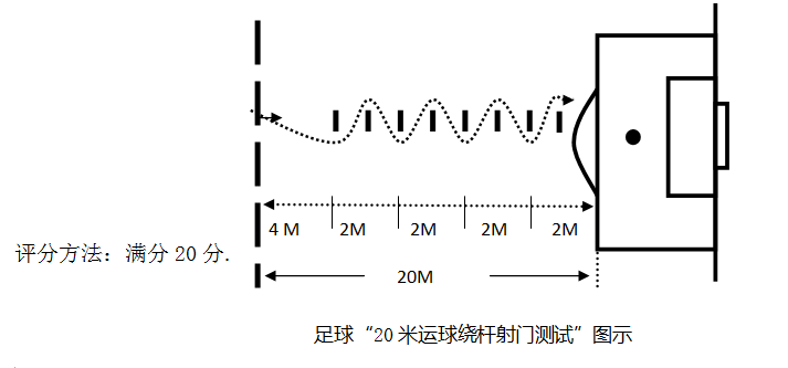 技术测试方法:守门员站在球门前,主考人位于守门员6-8米处,向他