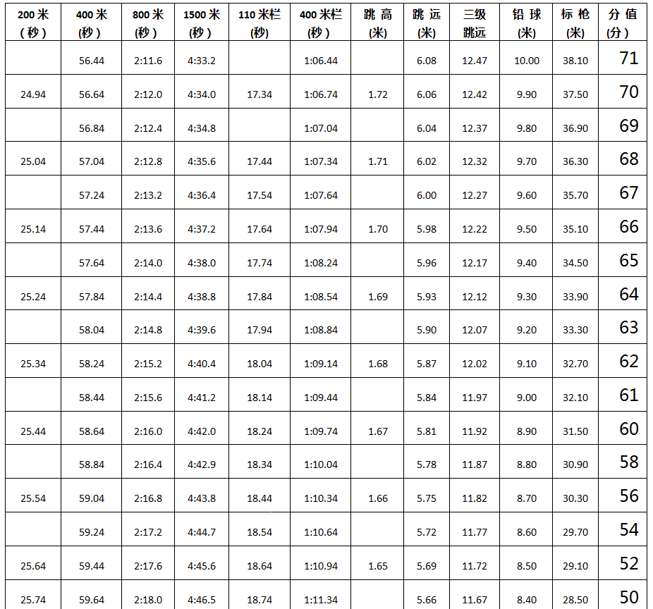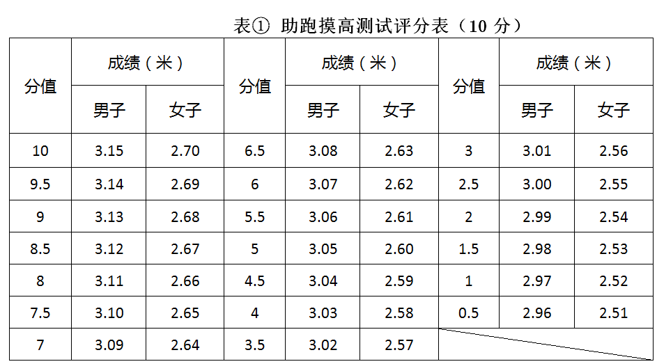 (3)测评时请自备运动服装及所需的运动器材,钉鞋要求用短钉,原地立定跳远可以穿钉鞋跳。