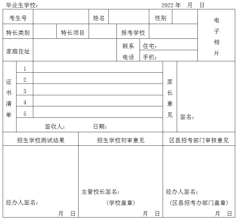 2022年广州市普通高中招收体育、艺术特长生报名表