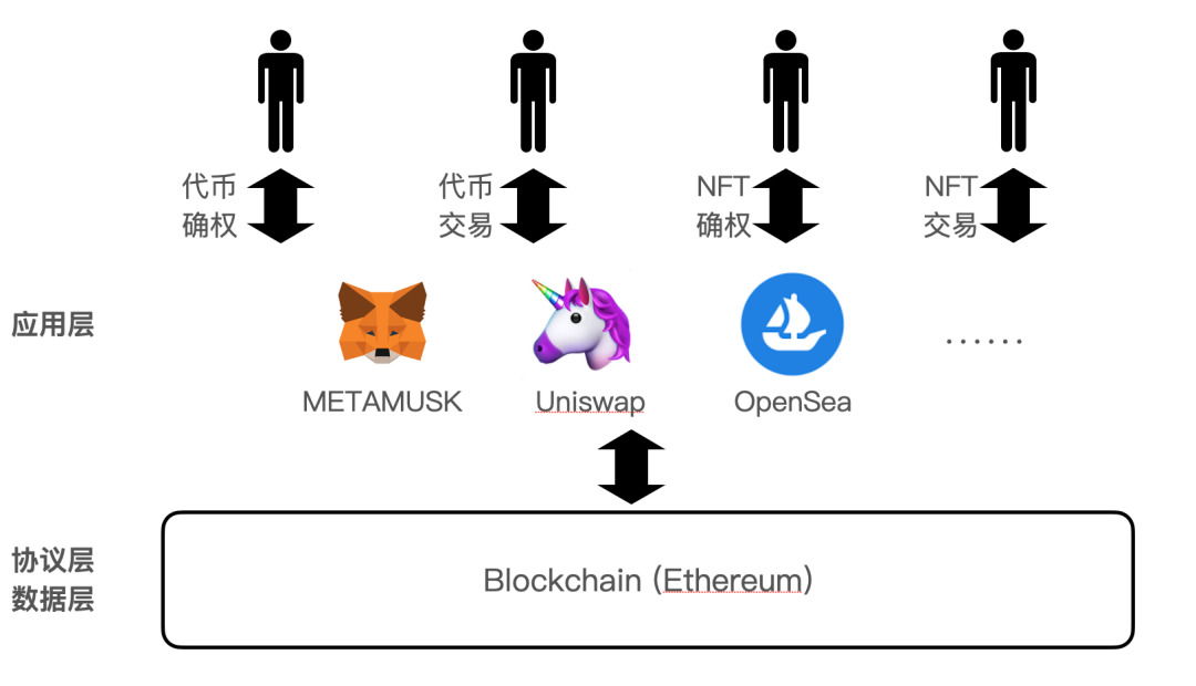 3) 现在的 Web3 领域里,大家都在热情讨论去中心化、分布式信任等等,却缺乏了对 client/server interface 的关注。也就是协议自己是无法提供功能的,应用层出现的这些平台在提供功能。比如,MetaMask 只是一层皮,它调用的是 Infura,Infura 再与区块链交互。而 MetaMask 是最热门的钱包应用,就意味着许许多多 Web3 用户把数据和隐私交给了这两家公司。用户以为自己是用区块链,但数据已经全部流过了这些应用层的产品。