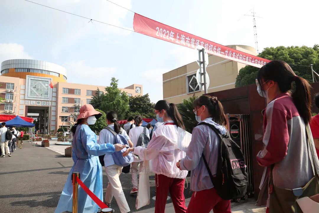 2022年高考,上海延期一个月举行。图为上海高考考生有序入场。