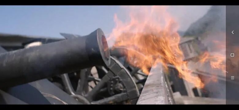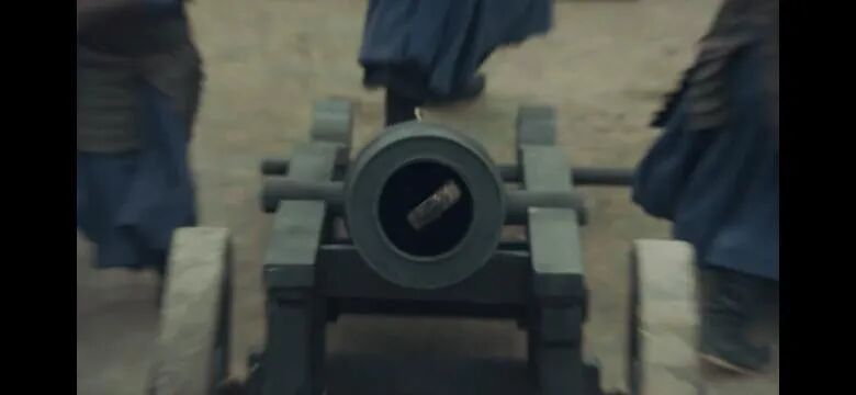 现在让我们看看男女主是怎么用冷兵器弓箭把大炮给射炸的。
