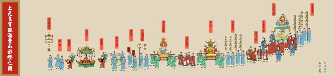 上元良宵巡游:还原古时上元良宵巡游沉浸式体验内容,恢复老上海上元灯会“天官鳌山灯”赐福巡游的民俗传统,邀请天官依例出巡,以表天官赐福,万民欣乐之意。天官、迎福童子、大头娃娃、舞狮等,仪杖鲜明,排场隆重。台阁、鼓船、乐队、灯树,五彩缤纷、热闹非凡。