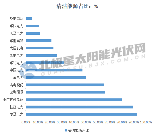 从清洁能源占比情况来看,龙源电力、桂冠电力、中广核新能源、深圳能源、吉电股份、上海电力清洁能源占比超过50%,其中龙源电力以92.5%遥遥领先,桂冠电力清洁能源占比达到89%,中广核新能源为79.8%。