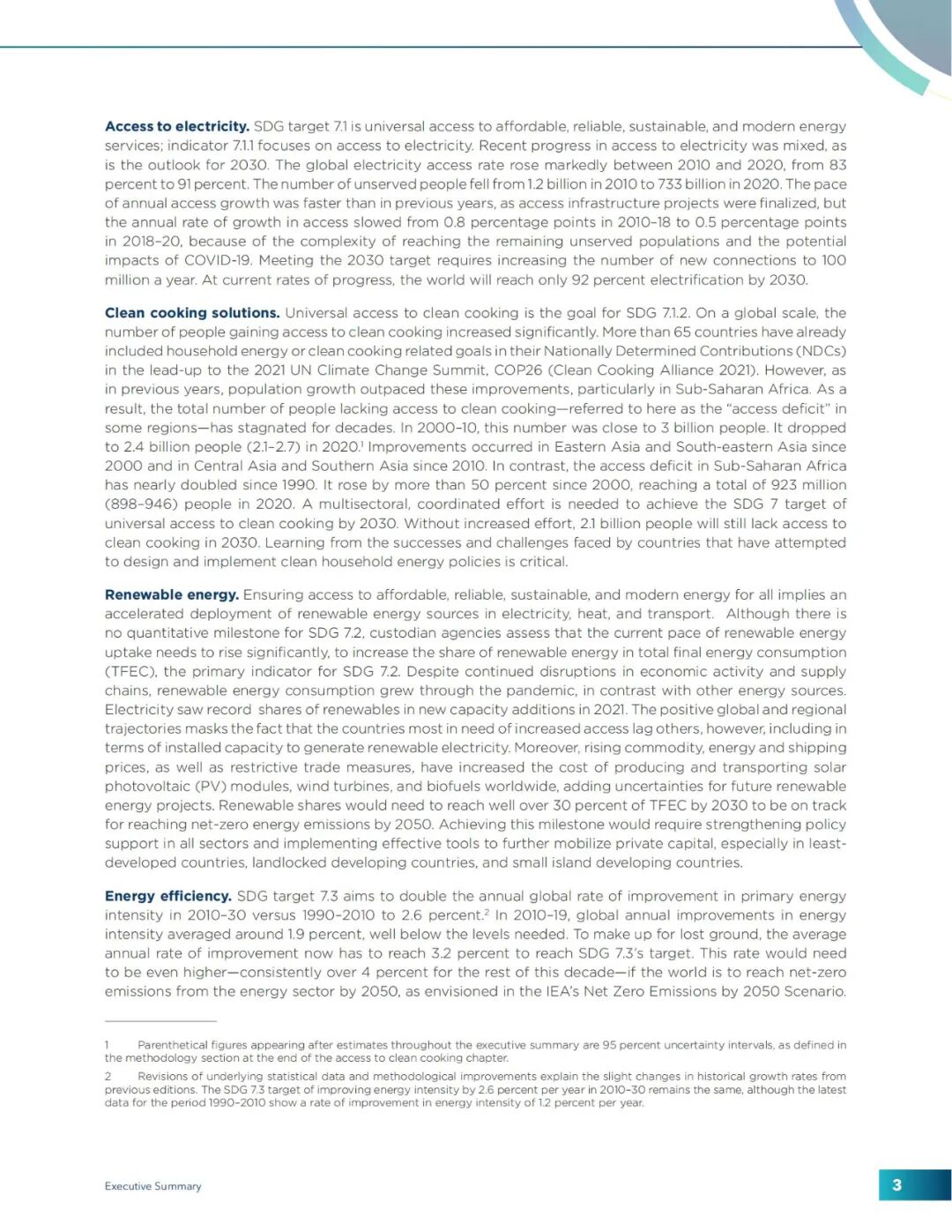 报告针对能源效率问题做出了总结,提出2030年目标:能源强度改善继续低于联合国2030年可持续发展目标(SDGs)设定的目标。2010年至2019年,全球能源强度的平均年增长率为1.9%。