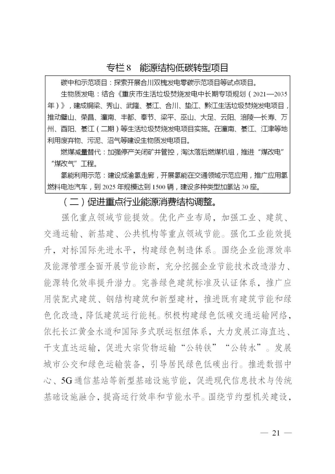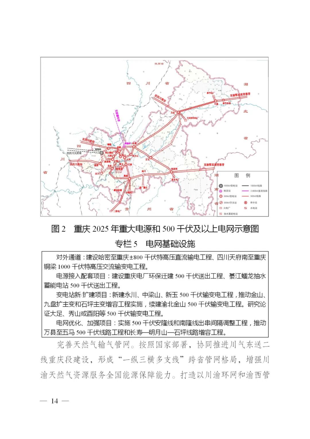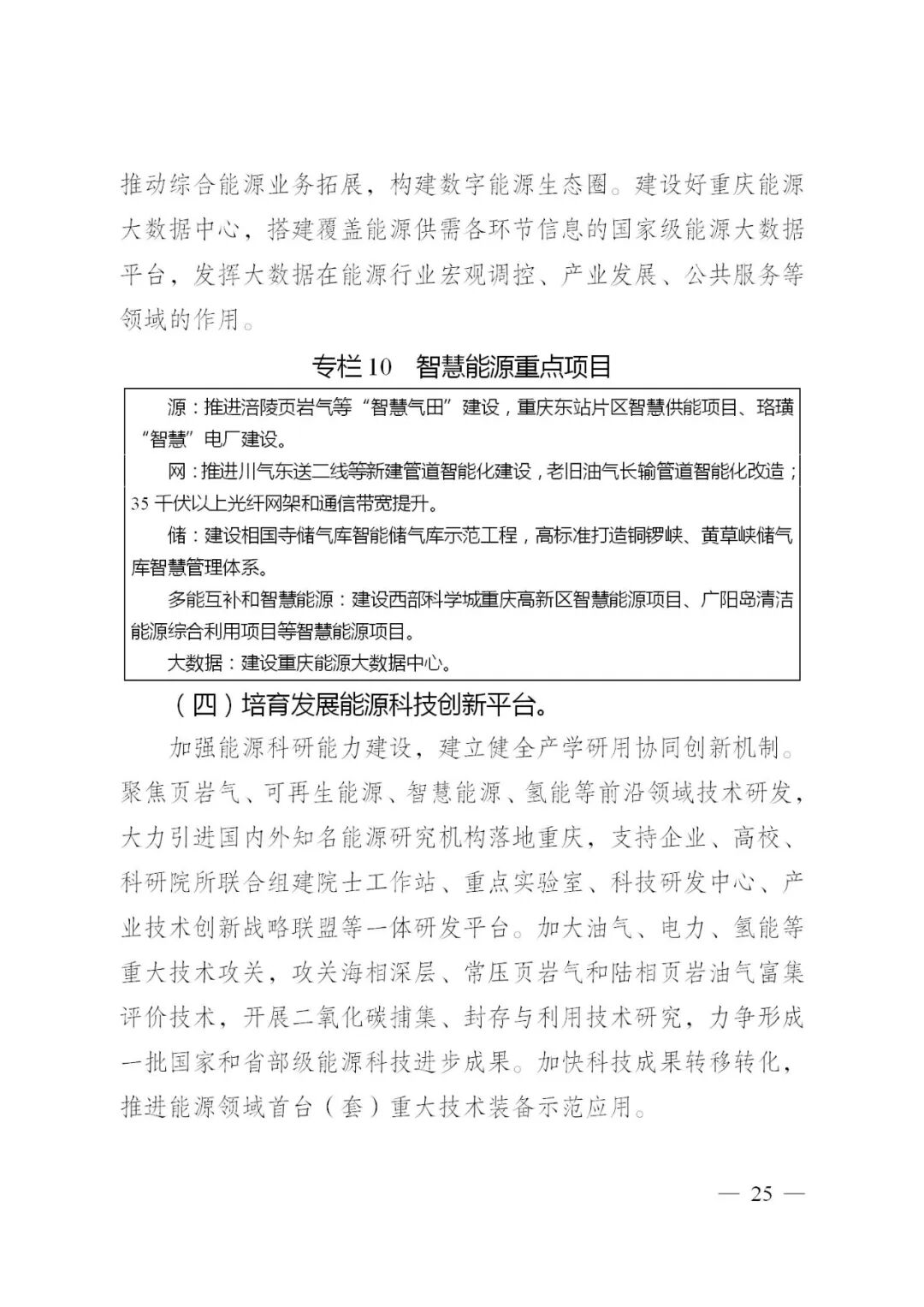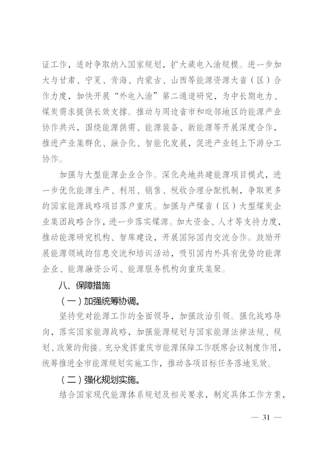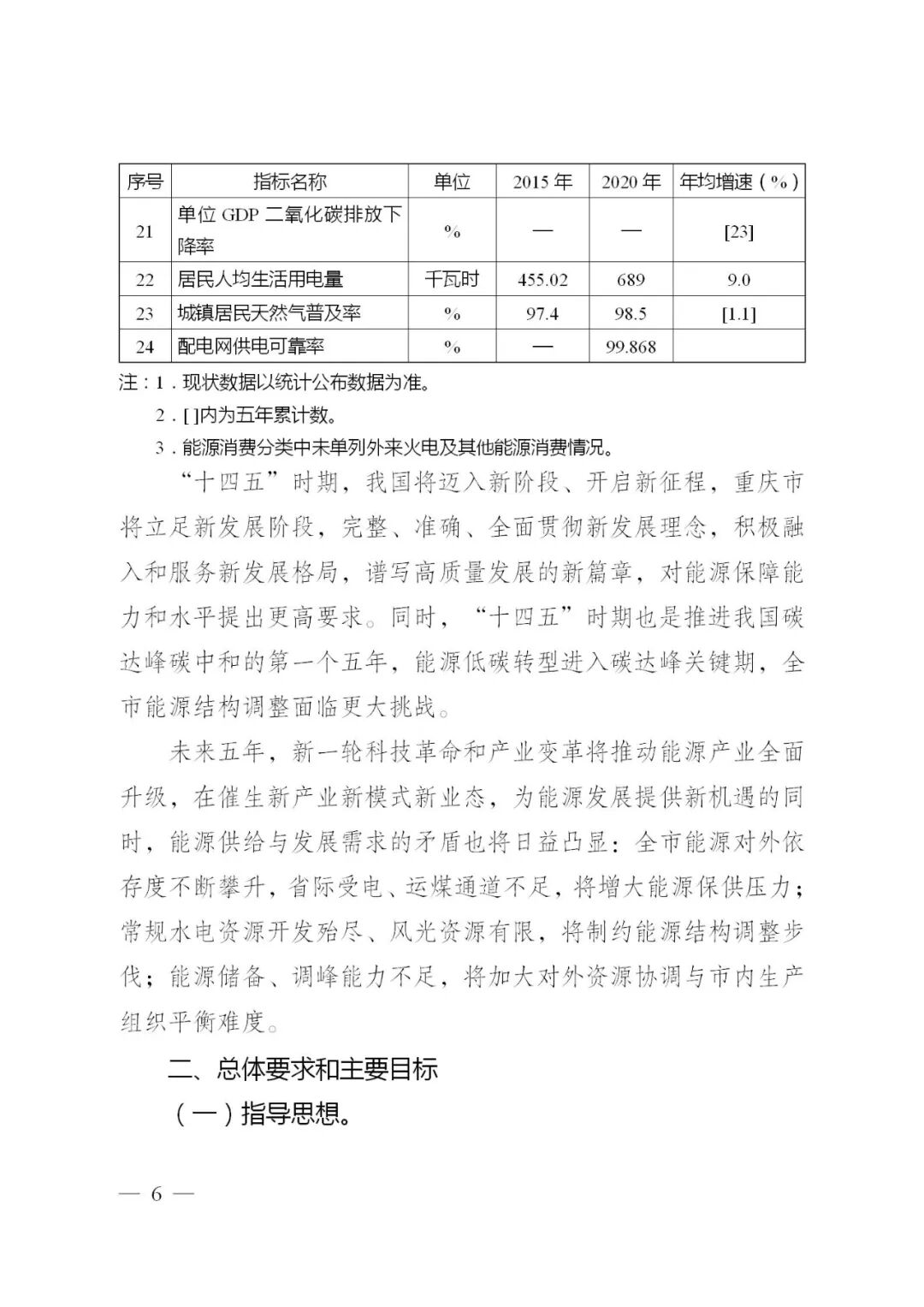 6月15日,《重庆市能源发展“十四五”规划》印发,规划对“十四五”能源发展做出规划。文件提出:“能源保障安全有力。到2025年,煤炭供应保障能力达到5000万吨;电力装机容量达到3650万千瓦,全社会用电量达到1620亿千瓦时;常规天然气、页岩气产量分别达到50亿立方米、135亿立方米;成品油供应能力达到1050万吨;能源储备体系进一步完善,应急保供能力进一步增强。”