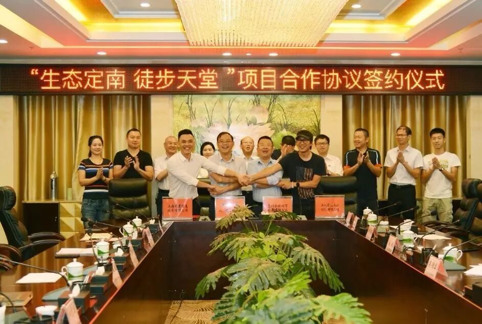 2017年8月30日,磨房网、惠州企徒、上海同筹共同与定南县政府在定南县迎宾馆进行“生态定南,徒步天堂”项目合作签约仪式,为打造“生态定南,徒步天堂”品牌迈出了关键的一步。