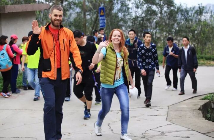 参加百公里的人有两种心态,很多人其实是过来玩的,有这种帅哥好基友大家一起来去徒步的,还有双胞胎的妹子。也有一个团队大家一起去走,走完以后会非常非常兴奋和happy。