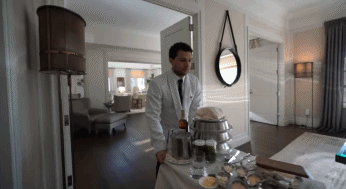 比如在Erik Conover和女友办理完入住手续之后,进入房间之前,居然还有专人在房间门前等候着他们,为他们提供擦鞋服务。