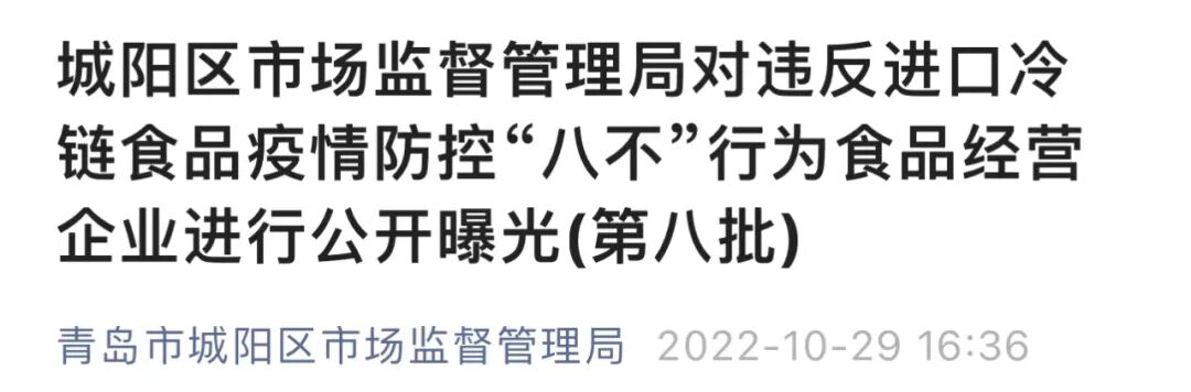 近日,城阳区市场监管局对城阳区经营进口冷链食品经营业户进行现场监督检查,现场发现部分餐饮单位未按照进口冷链食品疫情防控“八不”要求落实工作,现予以公开曝光。