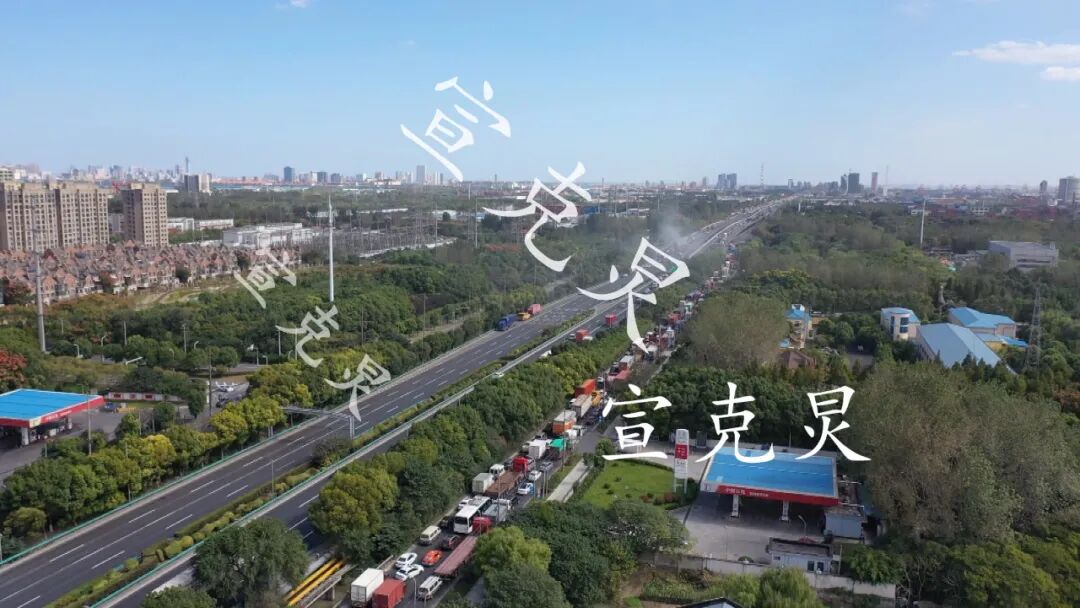 今天,走外环宝山段东向西方向上的车辆司机堵惨了!