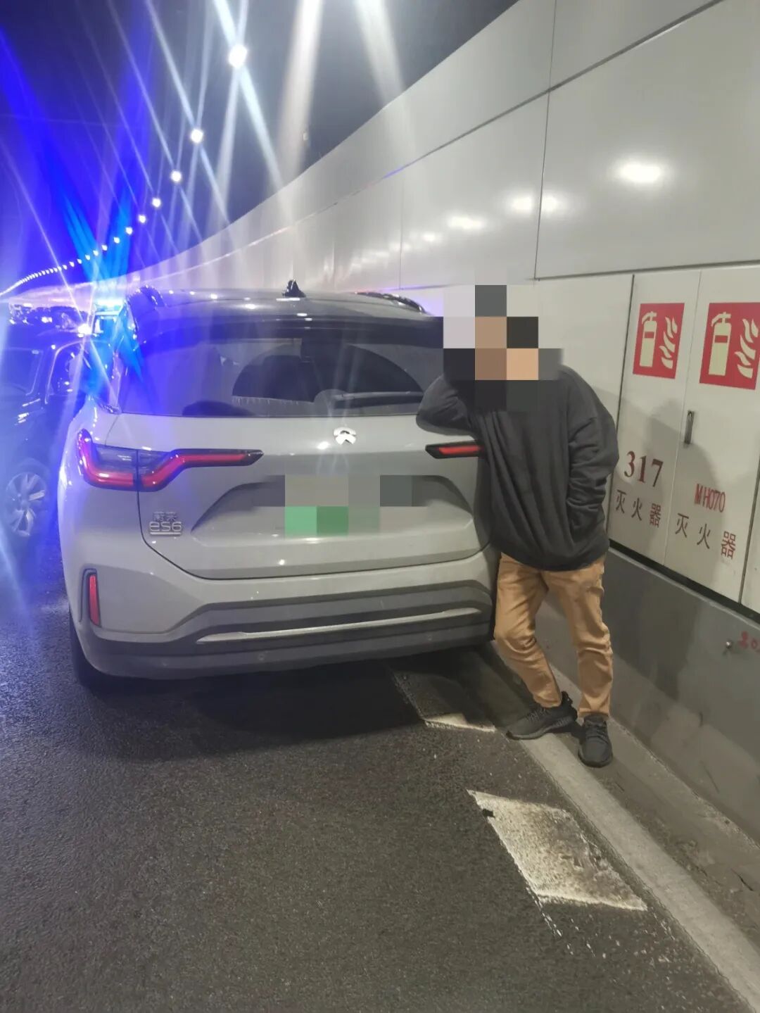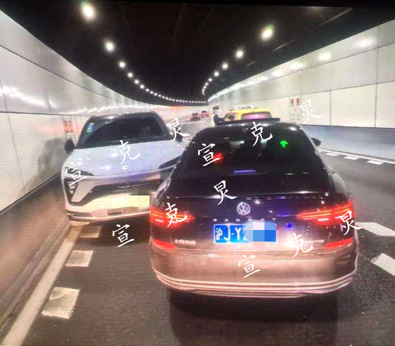 网友@金油推背 说:这辆蔚蓝在延安东路隧道里醉驾逆行!昨天搞得隧道里非常拥堵!