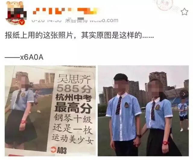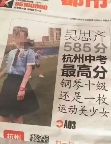 最开始,传统媒体上刊登了一位美少女学霸的照片。照片里,女生身穿校服,站在操场上,笑容甜美。“中考状元”、“钢琴十级”……简直是别人家的孩子。
