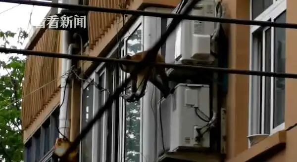 而在另一个市民记录的视频当中,这只猴子直接就顺着电线杆进入了居民的家中,不一会就跑了出来。市民高先生告诉记者,昨天下午1点多的时候,自己就在大楼旁的桥边看到了这只猴子。当时他正在桥上牵着狗散步,然后狗不知看到了什么一下子追了上去,他一开始还以为是一只猫,结果定睛一看是猴子。