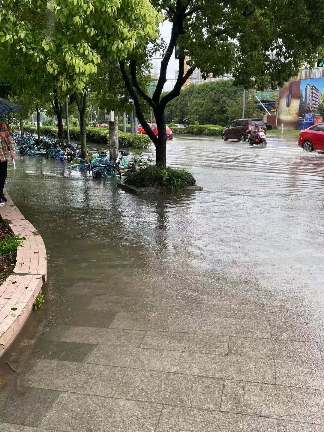 @云海 反映说:今天傍晚5点左右,杨浦区市光三村146号楼车辆有损伤一辆奔驰车,左前侧受损,事发后,物业工作人员随即进行协调,将这棵大树切割后进行搬离,让轿车“脱困”。另外,还有多位网友反映:一下大雨,康桥路御秀路附近路段就会有积水。![]()