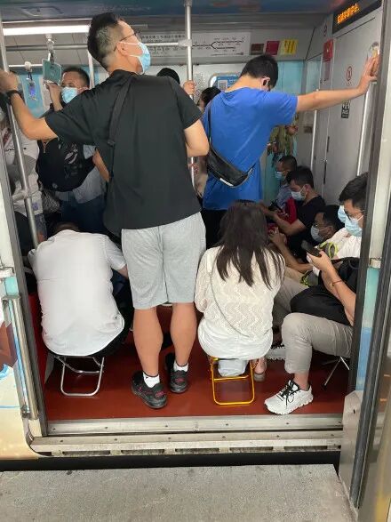 “九号线看看,门没开时候以为车厢里没什么人,当车门打开后全是侏儒症患者,呕不是啊,是板凳族。”