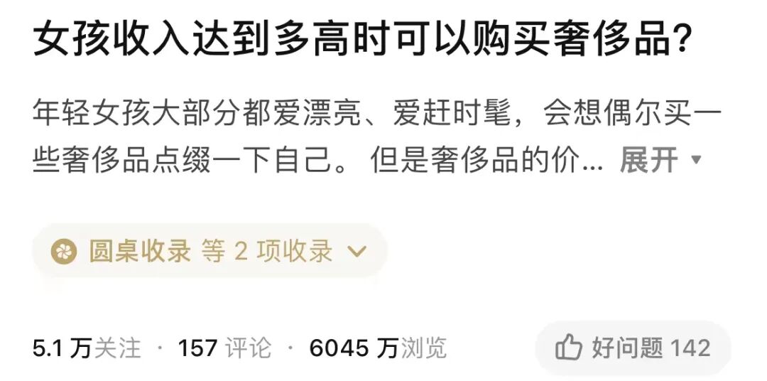 那收入多高才可以购买奢侈品?才能达到奖励自己的水准?在知乎上其实就有类似这样的问题,而浏览量有六千多万。其实,许多人都对这个界限不了解。
