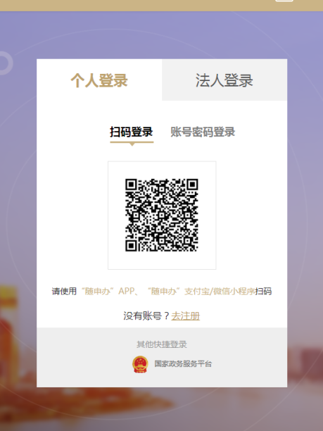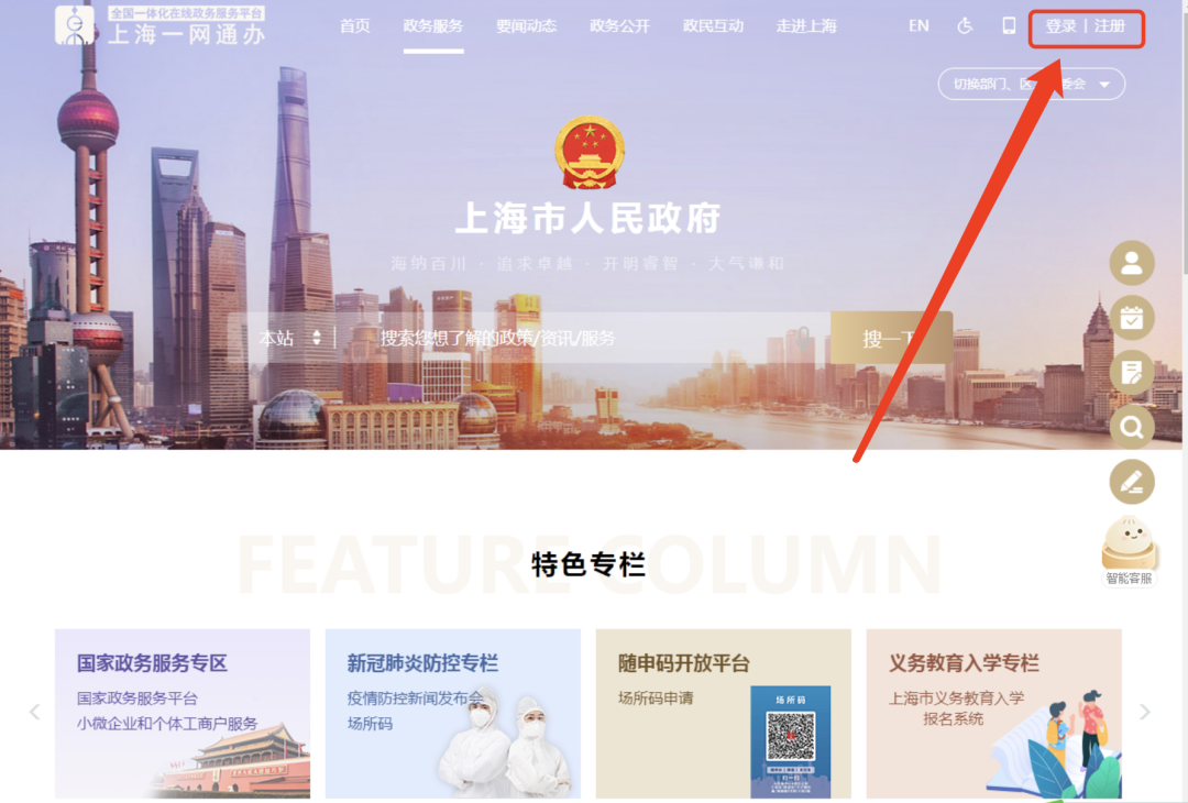 登录“一网通办”电脑端官方网站(https://zwdt.sh.gov.cn/govPortals)。可使用“随申办”APP,微信、支付宝“随申办”小程序手机扫码登录或账号密码登录。(如暂无账号可先行注册)